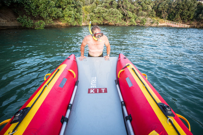 Forget about the usual tippy feeling when climbing into a True Kit inflatable catamaran.