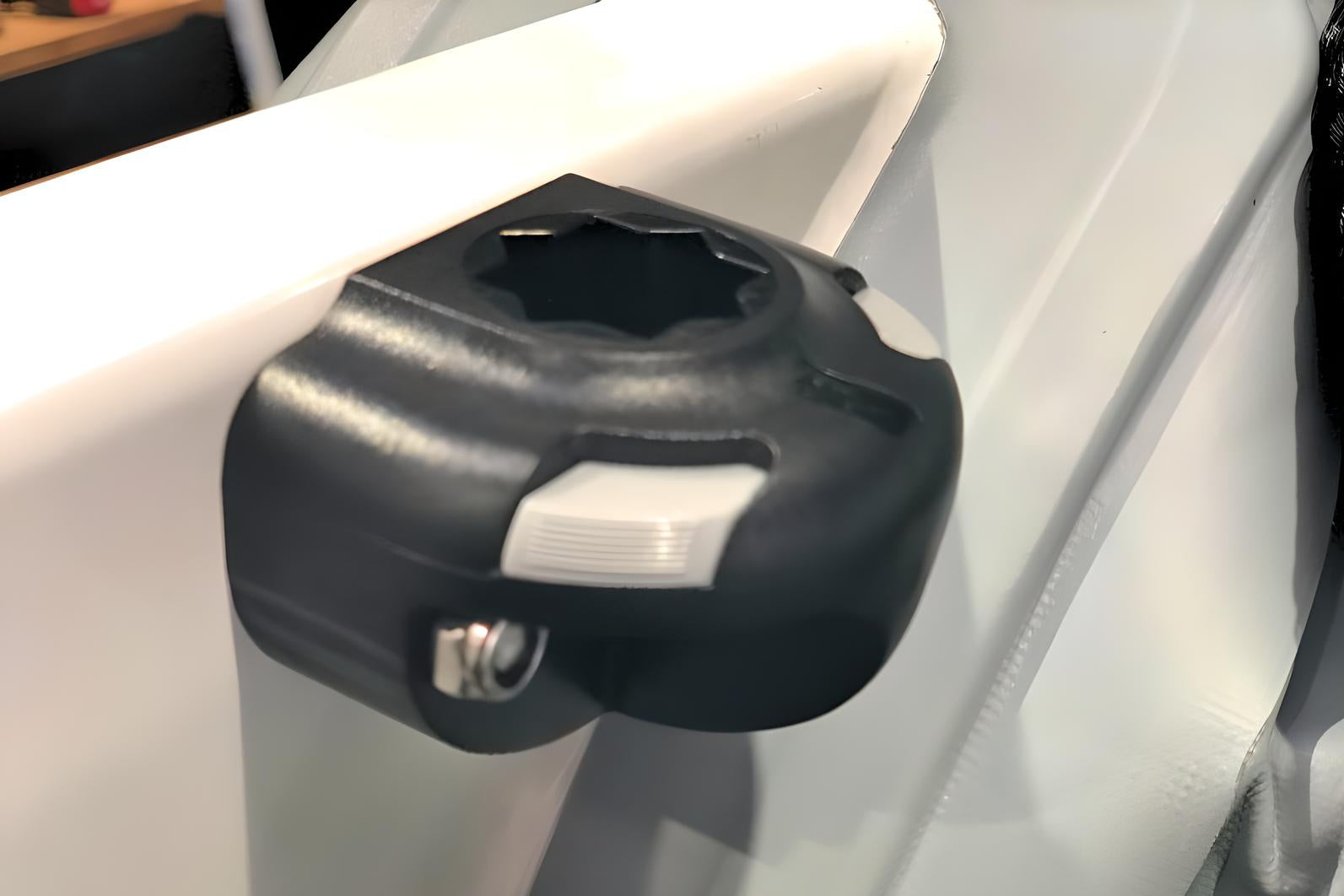 This handle makes it effortless to pull the boat along with the QuickLok Wheels. It can also be used as an anchoring point when the anchor or drift chute are deployed.